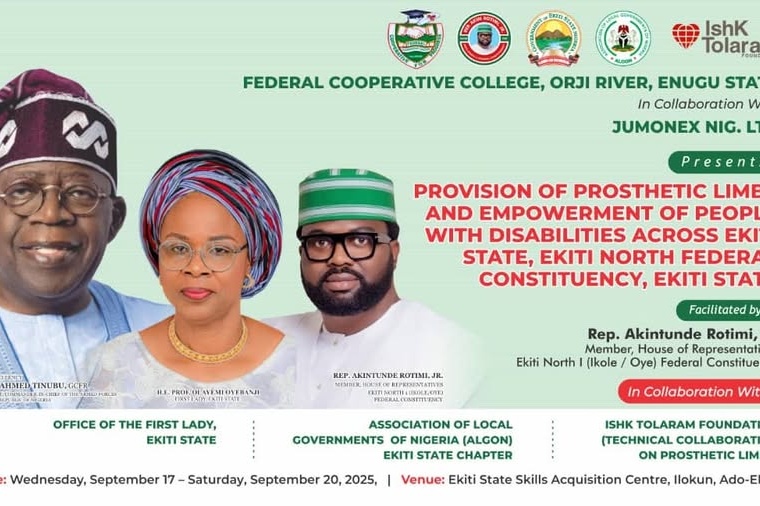 Ikole-Ekiti | Tuesday, September 16, 2025 – The AỌA Constituency Office is pleased to announce a dedicated Empowerment Week for Persons With Disabilities (PWDs) across Ekiti North 1 Federal Constituency. The four-day programme runs from Wednesday, September 17, to Saturday, September 20, 2025, featuring a series of impactful interventions designed to support and uplift members of our disability community. This…