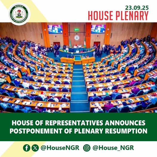 Abuja, FCT | Tuesday, September 23, 2025 – The House of Representatives wishes to inform the public that plenary resumption, earlier scheduled for Tuesday, September 23, 2025, has been rescheduled to Tuesday, October 7, 2025. This adjustment was formally communicated to Honourable Members yesterday via an internal memorandum issued by the Clerk of the House of Representatives, Dr. Yahaya Danzaria,…