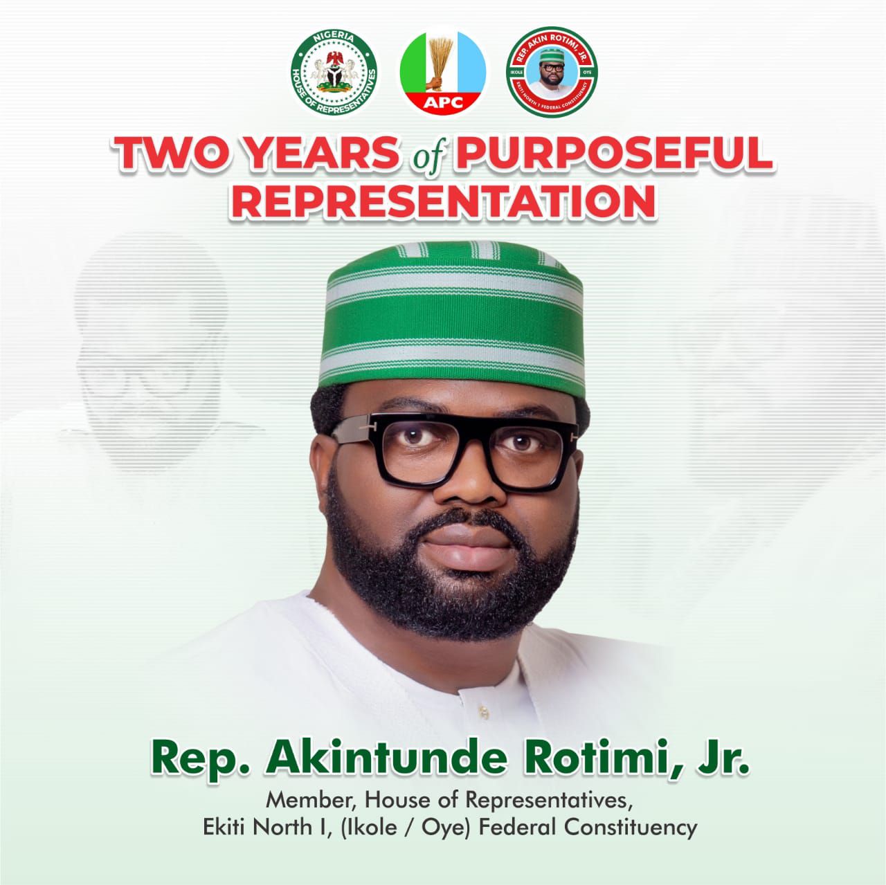 Today marks two years since I took the oath to represent the good people of Ekiti North 1 (Ikole/Oye) Federal Constituency in the House of Representatives.