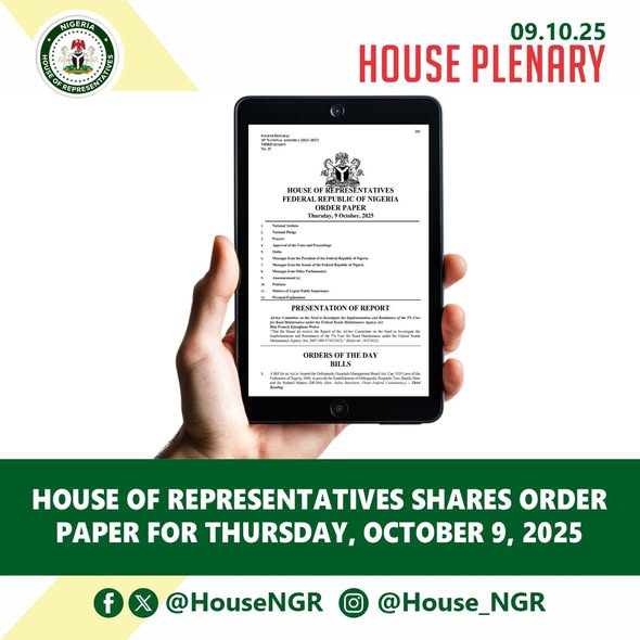 Abuja, FCT | Tuesday, November 4, 2025 – The House of Representatives is pleased to announce the release of the Order Paper for today’s plenary sitting, maintaining its established commitment to openness, transparency, and legislative efficiency in the conduct of parliamentary business.