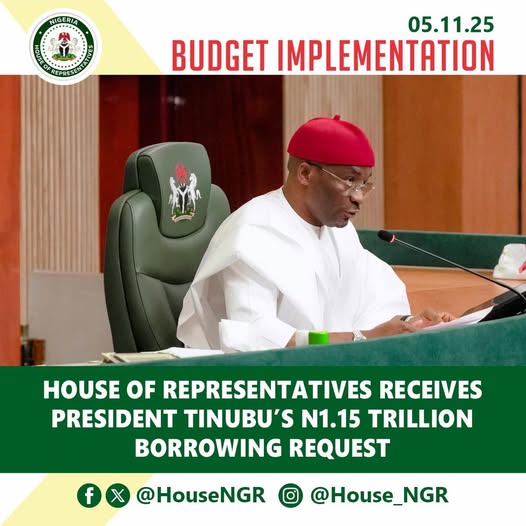 Abuja, FCT | Wednesday, November 5, 2025 – The House of Representatives on Wednesday received a request from President Bola Ahmed Tinubu, GCFR, seeking legislative approval to establish a One Trillion, One Hundred and Fifty Billion Naira (N1.15 Trillion) borrowing programme in the domestic debt market. The communication, titled “Request for the Approval of the National Assembly for a Borrowing…