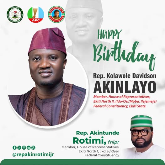 I join family members, friends, colleagues, and the good people of Ekiti North 2 in celebrating my brother and colleague, Rep. Davidson Akinlayo, Member representing Ekiti North II Federal Constituency, on the occasion of his birthday. Today, we celebrate a distinguished parliamentarian whose passion for service, humility in leadership, and commitment to the development of his constituency continue to inspire…