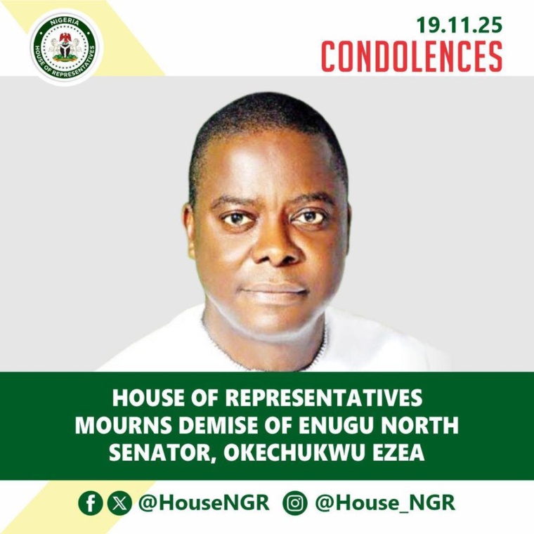 Abuja, FCT | Wednesday, November 19, 2025 – The House of Representatives is deeply saddened by the passing of Distinguished Senator Okechukwu Ezea, the lawmaker representing Enugu North Senatorial District in the 10th National Assembly. According to an announcement by his family, the Senator passed away late Tuesday, November 18, 2025 at the age of 62 after a brief illness.…